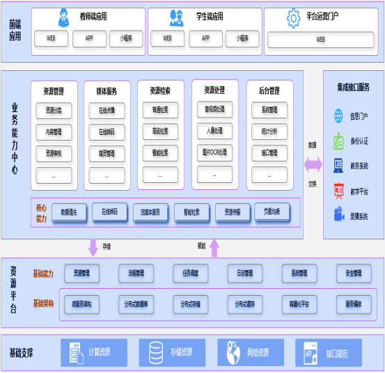 非結構化數據資源管理平台能夠将學校各教學平台、錄播系統的教學資源(視、音、圖、文)彙集在一起,實現高校多業務整合,並(bìng)且可由平台集中對數據進行存儲、運算 ,然後通過标準的API接口對外輸出資源查詢 、數據支撐(chēng)等服務。該平台面向教師 、學校領導 、學生及校外人員提供全方位的服務,增加系統服務大衆的屬性,促進就高校信息化環境的便捷。